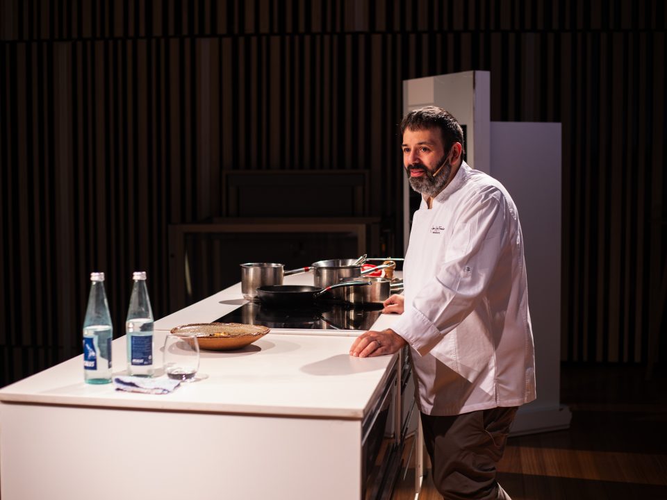 Juan Carlos Ferrando ha compartido escenario con sus colegas Ignacio Echapresto y Aitor Esnal en la jornada de identidad culinaria