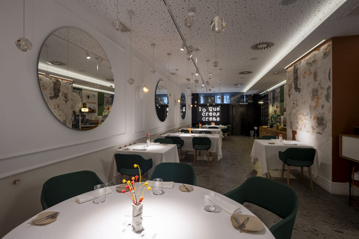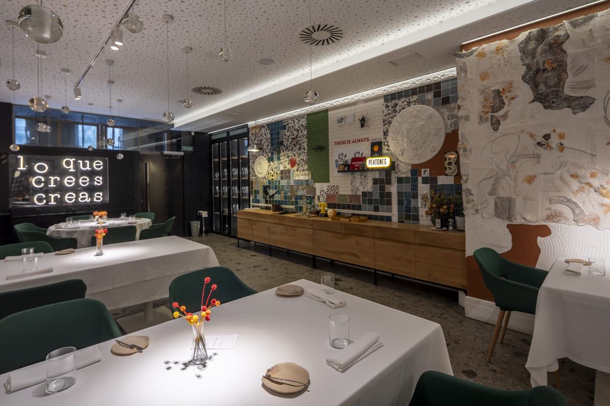En la céntrica y peatonal calle María Teresa Gil de Gárate, casi oculto entre fachadas, se encuentra el restaurante. Al cruzar la puerta, la sensación cambia: sorpresa, calma, cercanía. Todo invita a quedarse. La decoración, moderna y artesanal, habla el mismo lenguaje que la cocina: atención al detalle, personalidad y verdad. Lo que ves es, en realidad, un anticipo de lo que después sentirás en la mesa.